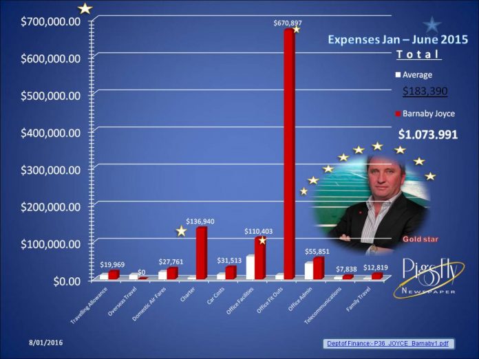 Barnaby decided that Air Charter is the only way to flit around the country $136,940 from January to June 2015 is not a bad spend in anyone’s book. Then to round out that spend leading National MP Barnaby Joyce found a way to spend $670,897 fitting out his humble office digs in main st Tamworth.