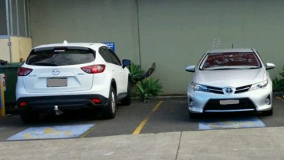 Reported in Gregory Hills: “After almost hitting my son and I twice whilst I was pushing a trolley in the carpark this woman then ignorantly parked across two disabled spots at Masters Gregory Hills.. She even got out of her car and looked, and then kept walking inside. Disgusting behaviour, she even had a young boy of maybe 6 or 7 with her. Turns out she was just in a hurry to return an item she just purchased.. We did check and there was absolutely no disabled sticker on the car. I have never been so appalled at the ignorance of someone in my life.”