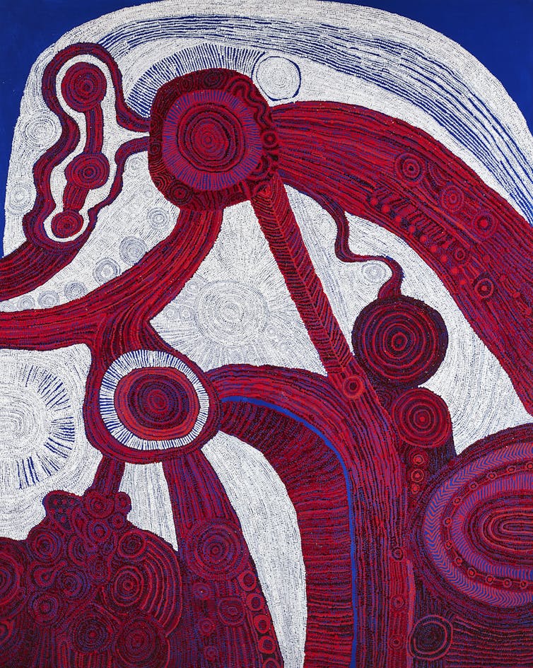 Last year John Olsen, who started his artist career as a student protesting against conservative trustees (before becoming a most conservative trustee himself), loudly objected to the presence of this art and these artists. He claimed Betty Kuntiwa Pumani’s winning painting existed in “a cloud cuckoo land”. Olsen’s entry The tree of life is installed in the same room as works by the APY Land artists. It is an exquisite curatorial rebuff.